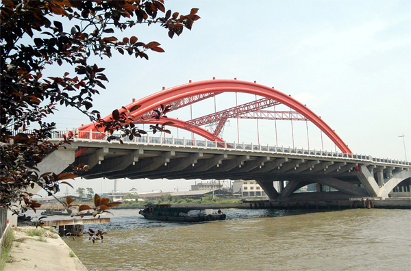 | 马运大桥东接北环路,西连马运路,跨越京杭大运河,是连接苏州中心城区和新区的城市桥梁,该桥的建设,极大的改善苏州城西的交通状况,加强中心城区和新区的联系,进一步优化了苏州的投资环境。美丽的桥梁造型为苏州市增添了不少现代气息。主桥采用三跨24+84+24米钢管混凝土无推力中承式系杆拱桥,东西引桥均采用7-20米预应力砼空心板梁桥。 |