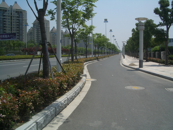 设计特点:本工程属老路改造设计,在满足交通功能的前提下,尽量考虑星港街的景观效果,按充分利用老路、控制造价原则改造。星港街道路拓宽基本采用现有西侧边线不动,向东侧拓宽的原则。现状机动车道由双向四车道改建成苏慕路至苏惠路为双向八车道,苏惠路至东振路为双向六车道。 |