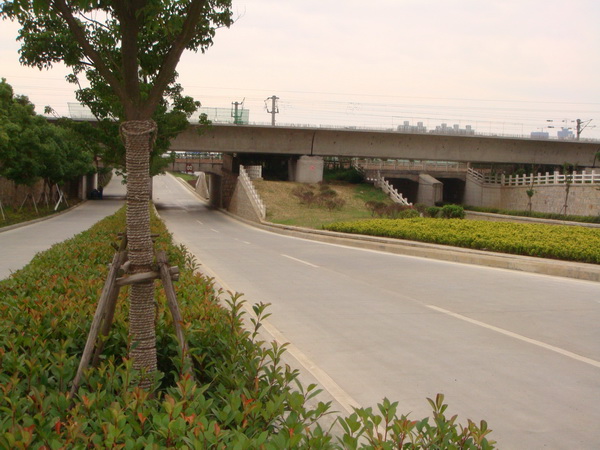 路线全长约440m,路幅为四幅式,总宽为38.7~50米。道路中部接下穿沪宁铁路的箱涵,箱涵分四个洞身(其中两个机动车道洞身净宽7.5米,两个慢行系统洞身净宽4.5米)。本次工程设计范围包括箱涵两侧道路以及道路雨污水设计。