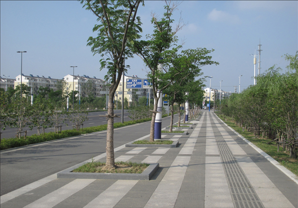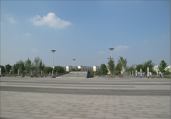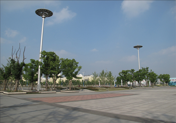 站前广场长约400米,宽约240米,总面积约9万平米,近期建设步行广场34090平米,社会停车场10950平米,公交首末站15080平米,其余为绿化。广场两侧布置市政道路,宽43米,双向六车道规模。
