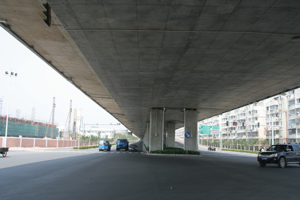 工程全长7.37km,其中高架桥长3.43Km,隧道长3.46Km,隧道地面接线道路0.48Km,地面辅道2.86Km。快速路主线双向6车道,地面辅道双向4~6车道。全线共设置高架上下匝道2对、隧道进出匝道1对。沿线设置星港街、星湖街两处支线下穿通道(双向4车道)。另外新建地面桥梁3座,拓宽地面桥梁1座,在桥隧结合部新建人工岛,隧道接地前改移河道等。