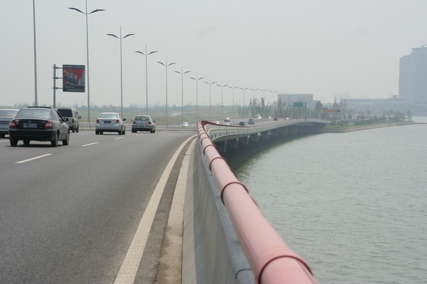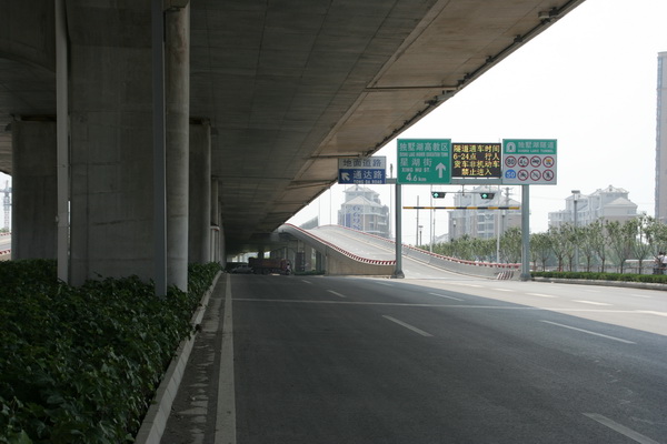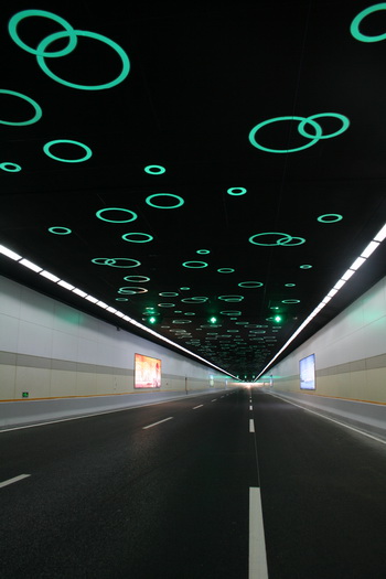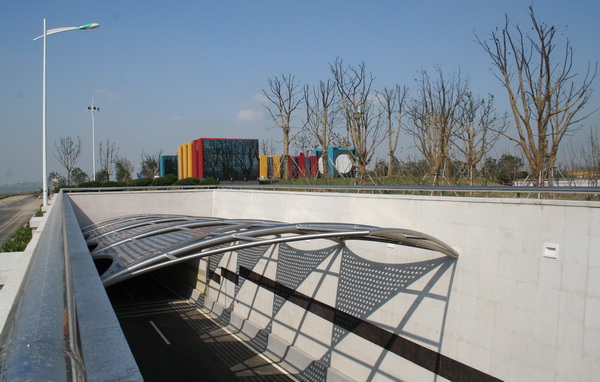 设计特点:1、桥隧结合方式体现工程与环境的和谐统一。2、采用大悬臂箱梁结构,高架桥宽26米,桥墩宽仅7米,桥下空间通透,方便道路布设,节约土地资源,外观美观大方。3、预应力连续箱梁相邻联施工互不影响,整体张拉工艺,极大地缩短了工期。4、以人为本、重视隧道防灾安全。5、隧道主体结构形式多样,围护结构因地制宜,节省造价,缩短工期。6、隧道通风选择纵向通风方式,适当提高通风卫生标准,选用双向射流风机,设置湖中低排风塔,减少了对周边环境的影响,节能、环保。7、沿线监控设施齐全,交通标志、标线完善,声屏障造型美观、隔声效果好,景观照明夜景迷人,隧道敞开段大型浮雕刻画城市建设新貌,共同构筑了现代优美的“洋苏州”城市景观。 |