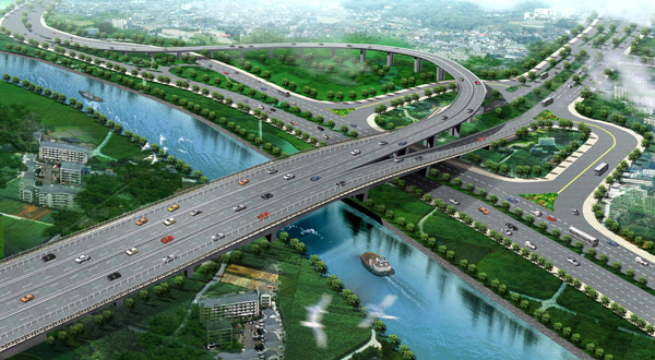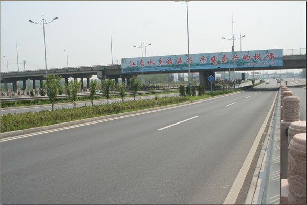 该工程位于嘉兴市的西南部,是城市主干道纵二路、环线三环南路以及一级公路320国道三条交通干道的交汇节点工程。主线全长1.901公里, 纵二路南北两侧路线全长0.904公里, 三环南路分S线和T线路线全长1.405公里。主要的桥梁有三座,一座为320国道C线桥,总长863.2米,桥宽18.5米。另外两座分别长282米,桥宽15米,高架桥总桥面面积24429.2平方米。另外还有地面小桥两座,箱涵两座。