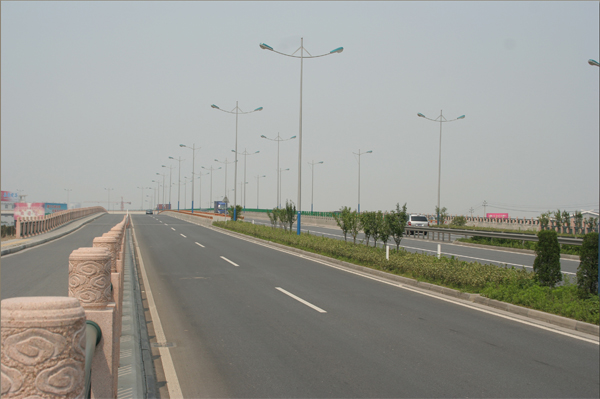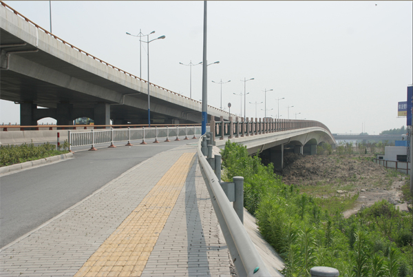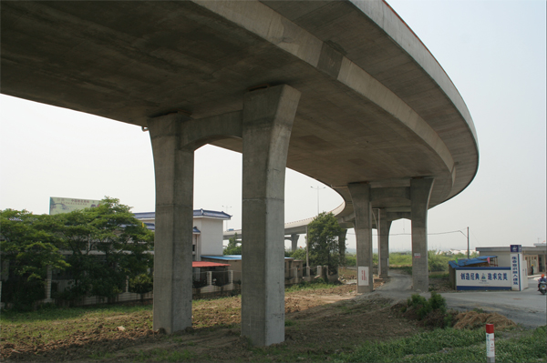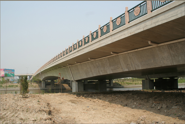 设计特点:1.总体方案经认真比选。 2、平面线形连续、均衡,与周围环境的协调。3、变截面预应力砼连续梁,小半径大跨径预应力连续梁桥是桥梁设计的两个难点4、桥梁结构新、用地省5、桥梁外型美:桥梁横断面为斜腹板箱梁,桥墩比例协调,桥梁结构顺畅。6、桥梁施工工期短:预应力连续箱梁相邻联施工互不影响,使高架桥施工能同时全面铺开,整体张拉工艺,缩短了工期。 |