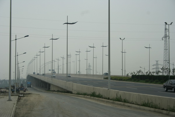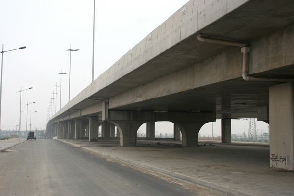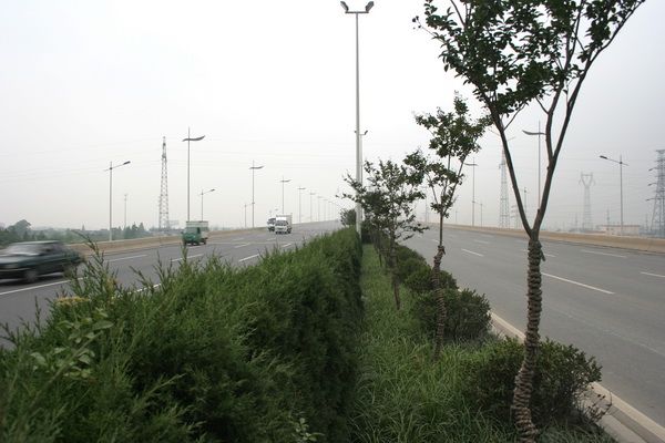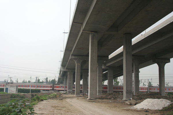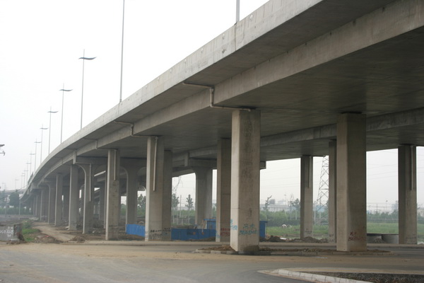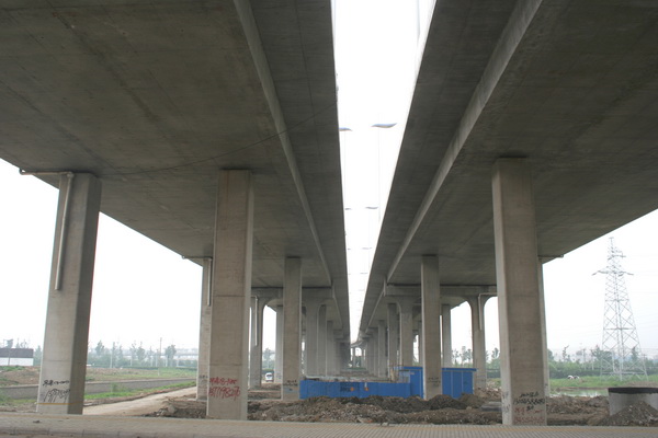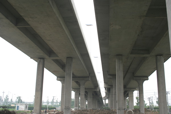 | 路线全长约2.317公里,其中高架桥长约1.262公里;路幅宽度20~39米;新建箱涵一座。预应力砼和钢筋砼连续箱梁结构,单幅最大桥宽19米;跨越沪宁铁路处为37米简支箱梁;桥梁多处跨越地面道路,桥梁结构分跨合理,变宽处理得当,桥梁整体形好,美观实用;为缓解312国道交叉口的交通压力,对交叉口进行渠化设计,设置右转专用车道,为便于车辆变换车道,交织段路面增加一个车道作为交织车道。 |