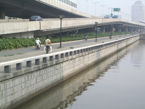 工程包括高架快速路与地面道路,路线全长5.4Km。高架道路双向6车道,地面道路双向4车道或6车道,路幅宽度34~62米。横向道路新建跨线桥一座,新建地面桥梁2座、拓宽桥梁4座、新建人行天桥1座,沿线原有主要桥梁(包括1-25m拱桥、8x2+16x3+8x2m梁桥以及20x2+25+35+25+20x2m梁桥)直接加以利用。路幅边缘处的现有河道驳岸加高改建段落长1.3公里。