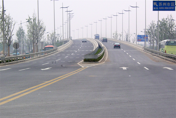 | 本工程为苏州市建设的第一条城市快速路,连接沪宁高速公路苏州西出入口。按城市快速路标准设计:快速路全线封闭;控制其出入口;所有相交道路(包括沪宁铁路、312国道等)均采用立体交叉;主线路线长约4.5公里,其中高架桥梁总长度约为3.5公里,辅助道路长度约2.60公里。 |