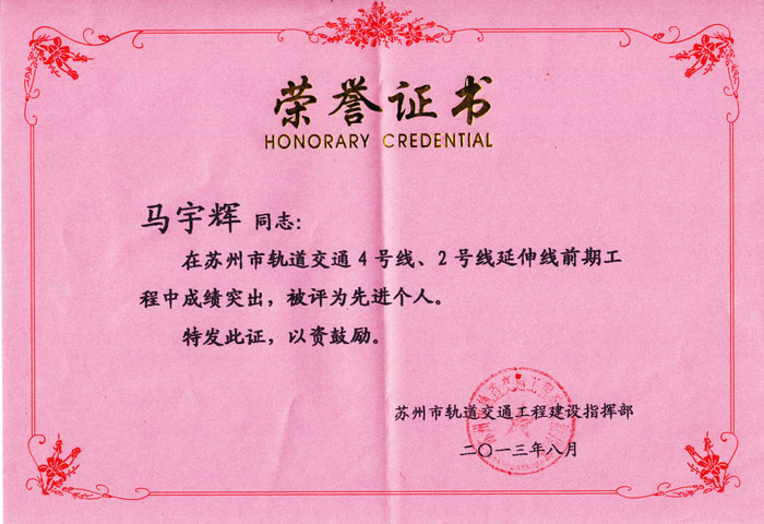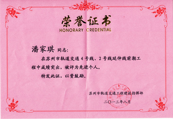 自2012年4月9日苏州市轨道交通4号线、2号线延伸线前期工程动员会以来,各参建单位在市委市政府的正确领导下,按照指挥部的统一部署,紧紧围绕“集中加快轨道交通4号线、2号线延伸线工程建设”这一工作主线,沉着应对前期工程时间紧、任务重、难度大等考验,夜以继日、顽强拼搏,为主题工程按期开工和顺利推进提供了有力保障,保持了苏州轨道交通前期工程“苏州速度”的金质品牌。为了表彰先进、树立典型,进一步推动轨道交通工程建设再上新台阶,苏州市轨道交通工程建设指挥部决定授予35家单位和部门,以及150位个人,“先进集体”和“先进个人”的荣誉称号。