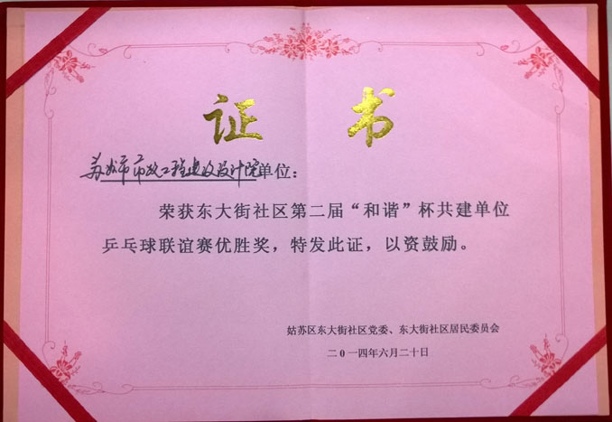 6月20日,第二届东大街“和谐”杯辖区单位乒乓球联谊赛在乒乓球特色中学田家炳中学举办,我院梁送春(桥隧工程设计所)、仇志良(市政交通营销部)、李政(景观环境设计所)组成的参赛队勇夺第四! 在本次乒乓球赛事中,各个队伍实力都很强。我院所在的B组堪称死亡之组,其中包括上届冠军东大街小学代表队。经过参赛队员的协作努力、勇敢拼杀,分别以3:0、3:1、3:1力克区经信科、公正天业和半导体总厂代表队,积9分以小组第二的身份跻身四强。在半决赛中憾负大通公司,最终获得了第四名的佳绩。 赛后队员们总结了比赛的得失,并与各强手交流经验,以“球”会友,约定明年再战。