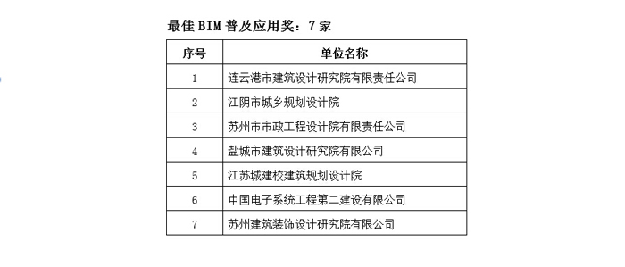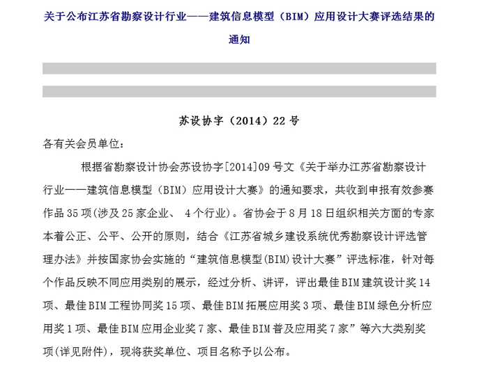 江苏省勘察设计行业建筑信息模型(BIM)应用设计大赛-我公司获最佳BIM普及应用奖