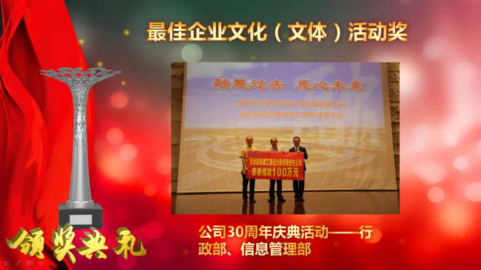 此奖项旨在表彰主要评选近年来公司行政、工会、青联会及各部门组织参加的与公司企业文化(文体)相关的各项活动。活动内容丰富,成绩优异,有一定影响力。