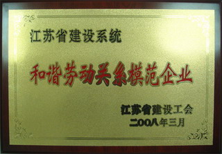 公司荣获“江苏省建设系统和谐劳动关系模范企业”称号