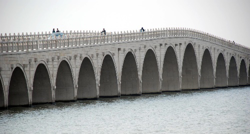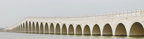常熟昆承湖状元堤是昆承湖生态修复工程的重要内容之一,由三座桥和两个岛屿组成。由我公司设计目前建成的状元桥是三座桥梁中最具特色的一座。它共有45个桥孔,其中最大一个桥孔跨度有15米,气势恢弘。远远望去,45个桥孔连成一串,犹如一条珍珠项链,浮在昆承湖湖面上。状元桥全长400多米,桥面宽约15米,连接着东西两座岛屿,设计有车行道和人行道。桥两侧的花岗岩栏杆上雕刻着488只小狮子,形态各异。拱桥、狮子、桥孔,它们在装点状元堤的同时,也为昆承湖增添了不少历史纵深感和人文气息。
