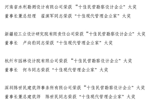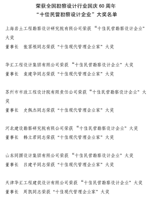 我公司荣获全国“十佳民营勘察设计企业”大奖
