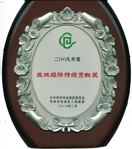 2009年2月9日,沧浪区人民政府召开了“2009年度纳税百强企业”表彰大会 ,在会上我公司获2009年度沧浪区纳税百强企业三等奖和区域经济持续贡献奖表彰。