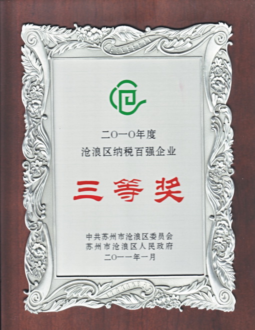 我公司获2010年度沧浪区纳税百强企业三等奖