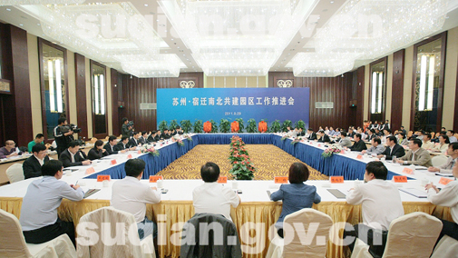 2011.9.29下午4点30,在宿迁市湖滨新城星辰国际大酒店三楼合韵厅,召开了苏州?宿迁南北共建推进会,苏州市、宿迁两地的主要市委领导及有关局委办领导参加。会议由宿迁市委秘书长田洪主持。宿迁市副市长、苏宿工业园区党工委书记顾玉坤做了工作汇报,宿迁市市委书记缪瑞林、苏州市市委书记蒋宏坤分别作了重要讲话。会议上,苏州市常务副市长曹福龙、宿迁市常务副市长王益共同为我院在宿迁成立的子公司“江苏省苏宿市政工程设计院有限责任公司”揭牌。苏州市蒋宏坤书记、阎立市长亲切会见我院史佩杰董事长,并合影留念。本次的揭牌仪式代表了我院子公司“江苏省苏宿市政工程设计院有限责任公司”的正式成立,并将立足宿迁、扎根苏北开展相关的设计业务,为苏州宿迁南北共建、做出我们的贡献。