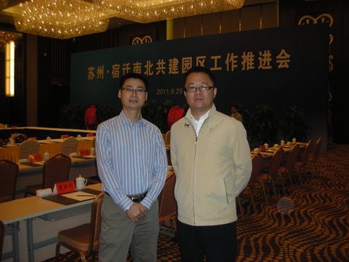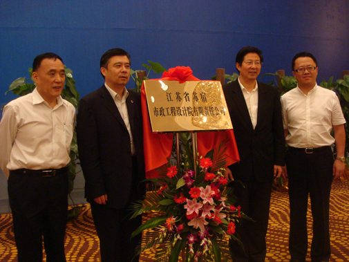 2011.9.29苏州宿迁南北共建推进会顺利召开,苏州、宿迁市委领导为我院子公司“江苏省苏宿市政工程设计院有限责任公司”揭牌。