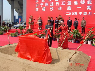 苏虞张二期、沪宁高速西互通连接线、苏福快速路一期在4月18日同时开工建设,省委常委、市委书记王荣为工程揭幕,市委副书记、市长阎立等四套班子的领导也出席了开工奠基仪式。我公司作为设计单位,在史院长的带领下参加了开工典礼。