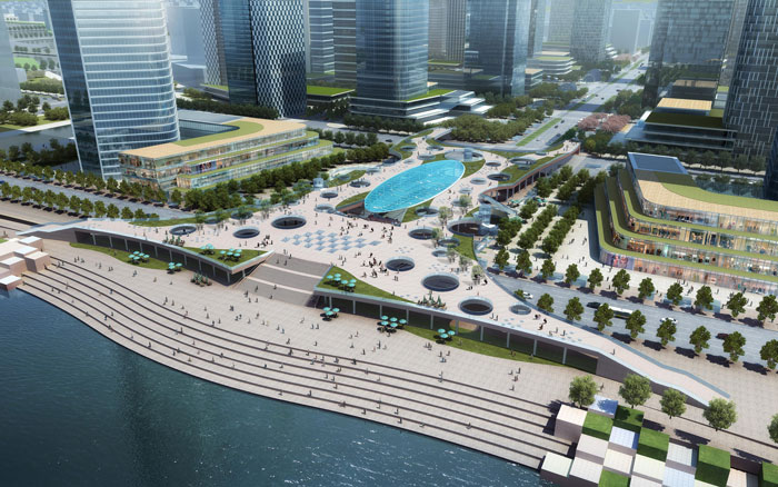 苏州市太湖新城核心区地下空间工程位于太湖新城中央商务区中轴大道、太湖大堤及绿化带下方。地下空间共三层,总面积约为30.6万平方米。地面是郁郁葱葱的都市轴,地下1 层是有阳光照射的地下商业空间,地下2 层和3 层则作为停车场。本工程通过创建一个地下和地上融合的中心轴,把周边地块连成一个有机的整体,形成吸引人们聚集的魅力中央商务区。地下空间结合轨道交通栖霞路站,实现了南北两侧公共地下空间地块充分对接,并对城市管线进行综合、城市停车空间进行融合,将苏州湾及周边地区融为一体,成为太湖新城的城市客厅。 经过前期与日建的合作和对该项目服务建议书的策划,业主决定该项目现由苏州市市政工程设计院有限责任公司作为设计总牵头协调单位,组织苏州市政院、日建设计、苏州设计、中铁四院四家单位联合进行设计。本工程现在已经进入初步设计阶段。 该地下空间的设计理念与特征 通过地下空间与地上景观,以城市和自然的融合为设计概念,作为中央商务区的核心骨架,通过车站、各街区和地下商业设施的合作,发挥协同效应。通过感受光照、绿色和自然风,形成与自然融合的富有魅力的地下商业街道,提高整个中央商务区的附加值。 1 由下沉式花园•天窗构成的绿色和光的地下商业 通过设计丰富的天窗、下沉式花园、中庭,并在商业中央主要商城上配置栽植,地面上郁郁葱葱的绿也能够被引入地下,创造一个有阳光照射的郁郁葱葱的地下商业空间。 2 使商业聚集在中心轴上 中轴大道的地下1 层是连接太湖与地铁站的主流线,通过集聚商业成为繁华的主商业中心。 3 与地铁站形成一体的地下计划 使作为中央商务区发展的起点的地铁4 号线溪霞路站与地下商业、地上步行者空间直接连结,通过创建与车站形成一体的地下空间,建设公共交通优先的城市。 4 实现步行者•公共交通优先的城市的地下停车场网络 中轴大道的地下2•3 层中增加地下1 层商业的停车场,配备公共停车场,为外周配备循环状的车路。通过将那些车路与周边街区的停车场连网,使有效的停车场利用成为可能,进而推进地上步行者、公共交通优先的城市建设。 |