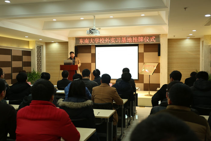 12月25日,东南大学——CCDI悉地国际苏州市市政工程设计院有限责任公司校外实习基地挂牌仪式在公司三楼报告厅隆重举行,这是公司产学研创新实践的新举措,开启了公司校企合作的新篇章。 该基地是公司的首个校外实习基地,它的建立旨在接收东南大学优秀学生到我司进行校外实践和创新研究,它将通过产学研的结合,为东南大学提供教学实践平台,通过实习指导,丰富东南大学学生的就业经验,同时通过选拔优秀的学生来公司实习,将拓展公司发展的人才空间、积累人才资本。 东南大学教务处副处长沈孝兵、交通学院副院长程建川、苏州研究院副院长李成明、机械学院副院长贾民平,CCDI悉地国际苏州市市政工程设计院有限责任公司董事长、总裁史佩杰,董事、副总裁、市政交通设计院院长李建平、副总裁、总工程师曾惠芬、行政部主任王向群及20余名东南大学的老师、学生代表和公司的部分东大毕业生代表出席了挂牌仪式。沈孝兵处长和史佩杰董事长共同为东南大学—CCDI悉地国际苏州市市政工程设计院有限责任公司校外实习基地揭牌。