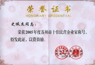 公司董事长史佩杰被评为2005年苏州“十佳民营企业家”