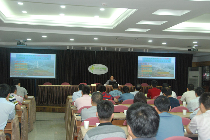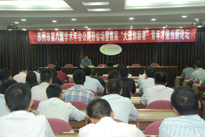 2014.9.19日下午,苏州市公路学会主办苏州市第八届学术年会公路分会场暨首届“大道创新者”青年才俊创新论坛,公司副总裁曾惠芬带队参加。会议邀请六位青年才俊作演讲。苏州交通运输局陈建新副局长《公路工程安全管理理论创新和实践初探》专题演讲,公司市政交通院桥隧工程设计所彭志苗总工程师作了题为《五河口斜拉桥结构设计、分析与施工》的专题演讲:五河口特大桥是宿淮高速公路的咽喉控制工程,桥梁全长2062m。主桥为双塔双索面预应力混凝土钢绞线斜拉桥,主桥跨径:152m+370m+152m,主梁宽38.6m,双边箱结构,主塔高137.1m,共有124对斜拉索,大桥呈双向六车道布置。该桥宽幅斜拉桥的成功实施,用事实证明:科学设计、管理规范、监理和监控到位、施工措施可靠,再宽的混凝土桥其桥面裂缝也是完全可以有效控制的。该项目的实施,为以后宽体斜拉桥的设计、科研及施工提供了可供借鉴的经验。 其他演讲题目为《公路现代化核心技术研究》、《长寿命桥面铺装关键技术研究》、《基于现代化理论的城市高架桥可持续发展探究》、《计量支付模块在苏州公路工程建设管理中的应用》,充分展示了学术年会“百花齐放、百家争鸣”的景象。 |