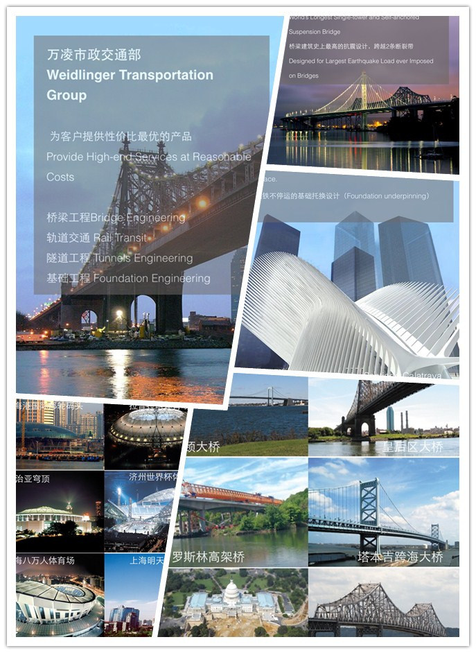 Weidlinger(万凌)公司创立于1949年,在美国一直致力于提供高品质工程咨询和设计服务,以专业化,创新性和多样化的服务特色在业界享有盛誉。公司提供桥梁、房建和基础工程的设计和加固维护方案,并开发功能优越的结构分析软件。Weidlinger(万凌)公司与CCDI悉地国际达成战略合作关系,合资在上海成立分公司,中文名为万凌建筑设计(上海)有限公司。服务领域涵盖建筑结构设计与咨询,桥梁设计、检测、加固,结构健康监测,轨道交通减震降噪,隧道的检测和加固等。