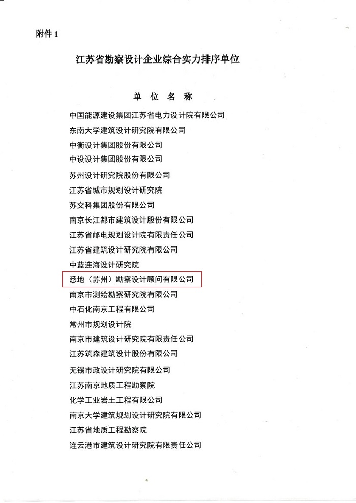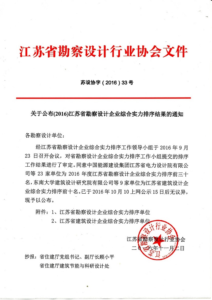 悉地(苏州)获2016年度“江苏省勘察设计企业综合实力排序前三十名”