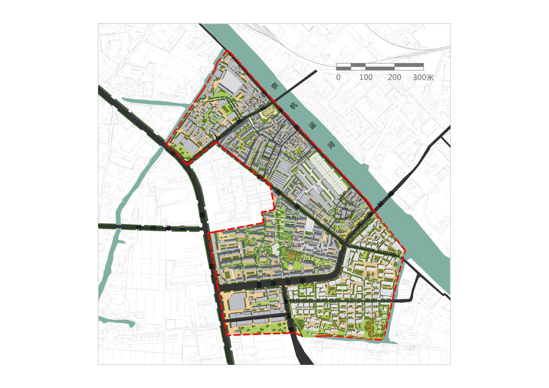 2 提升现有街道环境品质,激活商业氛围,包括新旺路、望亭大街、人民街等老镇区主要道路共同组成的望亭老镇区;