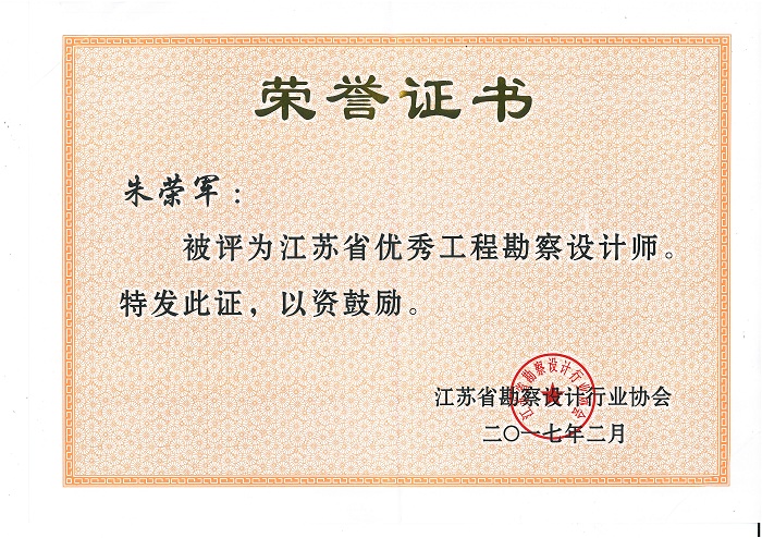2017年4月27日江苏省勘察设计行业“顺势而为,创新求变”年度峰会在常州举行,我公司朱荣军总裁参加了此次峰会。会上为获得2016年度“江苏省勘察设计企业综合实力排序前三十名”的企业及被评为第四届“江苏省优秀工程勘察设计师”的个人举行了隆重的颁奖仪式。