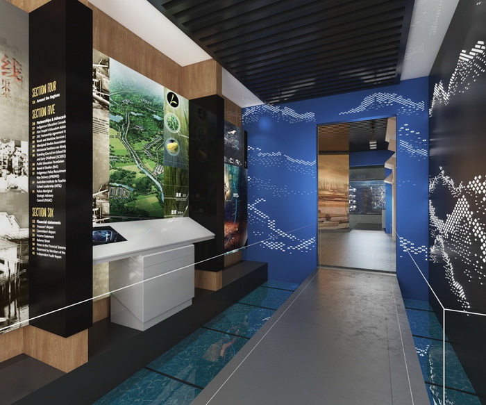 该项目位于铜梁区新城核心区内,东临金龙大道,南临迎宾路,西临亚龙路,北临香滨路,规划展览馆装饰及布展面积约2500平方米。鉴于铜梁区良好的地理位置、城市风貌和人文历史,设计方案时着重立足于铜梁区的历史文化生态环境,围绕生态、城市的理念,提出“魅力铜梁、璀璨龙城”的设计主题。立足现在,着眼未来,将铜梁区的历史文化、建设成就、生态人居和未来城市融入到设计的空间格局,实现了空间、生态、文化的共生,展望了“筑梦渝西,铜梁追梦”的美好未来,让人们能够身临其境的体验综合智慧城市的运行管理和应用。