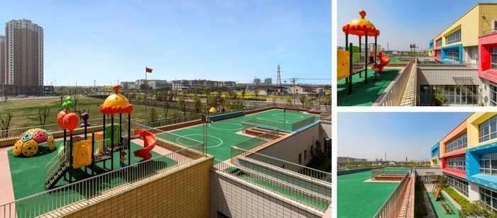 在景观设计上特别强调孩子的参与性,引入了校园园艺概念,室外园艺场所植物园及地面和屋顶绿化,让孩子们通过视觉、触觉、听觉、嗅觉全方位的感受植物,在玩乐中让孩子更加真切地感受大自然,丰富想象力。