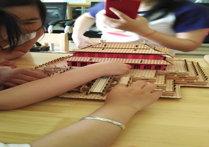 参观完幼儿园,我们设计师身上接下来要跟小朋友“亲密接触”了,给小朋友一起上一节建筑模型课——拼图。