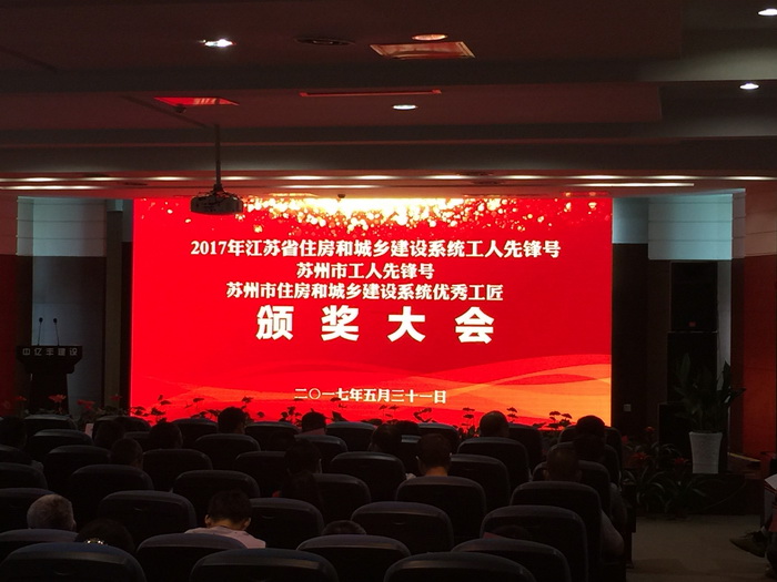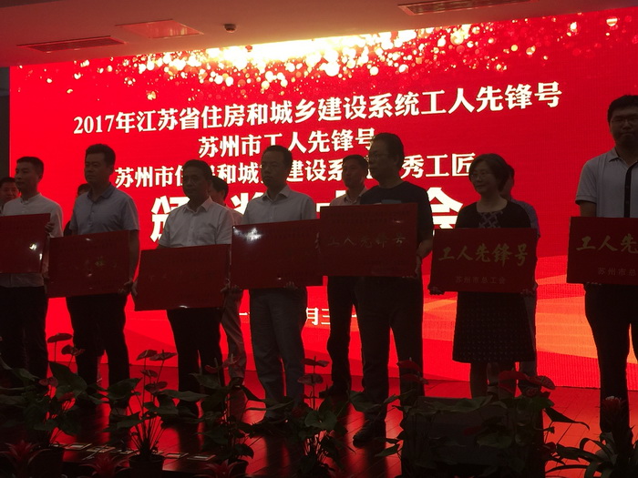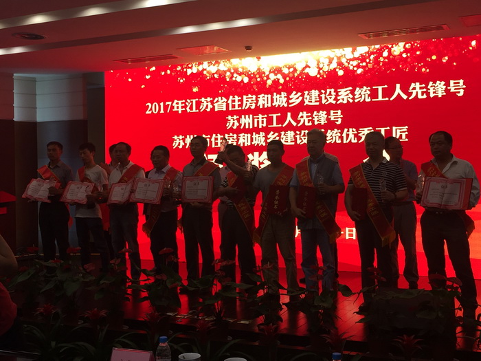 5月31日下午,在苏州市住房和城乡建设局召开的2017年省住建系统工人先锋号、苏州市工人先锋号及2016~2017年苏州市住建系统优秀工匠颁奖大会上,公司史佩元先生和苏州轨道交通5号线前期工程项目组分别被授予苏州市住建系统“优秀工匠”和苏州市“工人先锋号”荣誉称号。