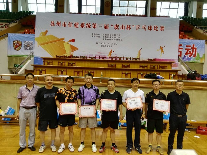 7月11日至12日,由苏州市住建局工会主办,常熟市住建局工会、常熟市建筑行业协会承办的苏州市住建系统第三届“虞山杯”乒乓球比赛在常熟市体育馆隆重举行。本届比赛是为丰富住建系统干部职工体育文化生活,进一步落实“苏州市全民健身月”计划,做好第十届全省住房和城乡建设系统乒乓球比赛的组队工作,提高住建系统广大干部职工的身体素质,以良好精神状态和优异工作成绩迎接党的十九大胜利召开而举办的。苏州市住建局纪委书记张思、工会主席刘列平、常熟市住建局局长蒋向阳、党委副书记褚卫东、工会主席江建民参加了开闭幕式,并为获奖代表队及个人颁奖。