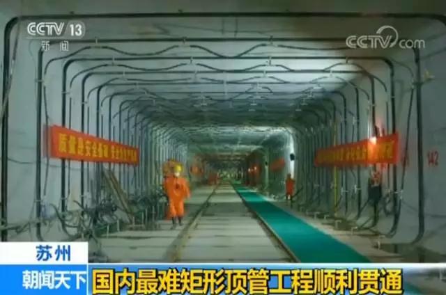 苏州城北路综合管廊工程全长约11.5公里,设有电力舱、水信舱、燃气舱、热力舱四个舱室,其中穿越元和塘、苏州军分区地块矩形顶管工程为目前国内顶进距离最长的超大断面矩形顶管,被业内誉为“中国第一顶”,该矩形顶管断面为9.1米x5.5米,顶进距离长达233.6米。