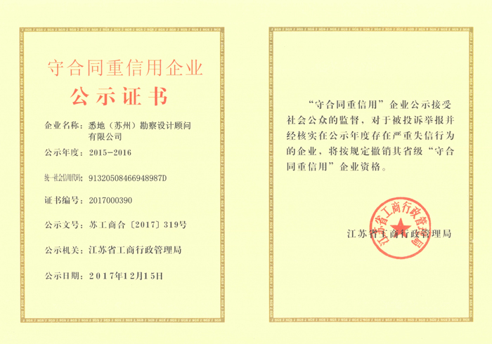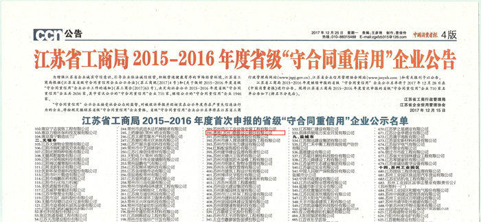 公司获2015-2016年度省级守合同重信用企业称号