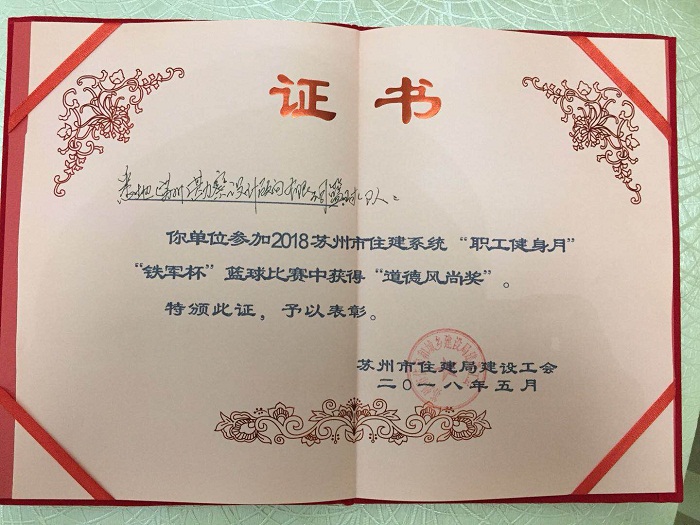 公司篮球队接到活动通知后,在公司工会和公司青联会的指导下积极备战。篮球场上运动员们不畏强敌,奋勇争先,比赛气氛紧张而热烈。循环赛阶段,悉地(苏州)篮球队3战全胜,以小组第一名的成绩出线;淘汰赛阶段,面对实力强劲的苏州一建,悉地(苏州)以2分险胜,晋级4强;决赛阶段,憾负吴中区住建局篮球队和园区规建委篮球队。最终悉地(苏州)篮球队取得本届比赛第四名的好成绩,并荣获“道德风尚奖”。