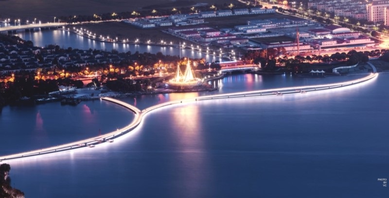 本工程改造新建桥梁五座,分别为中茵皇冠桥、玲珑桥、艺术中心桥、中塘河桥、金水湾桥。做为重要5A级景区里的桥梁,如何成为景区里的一景,为景区争光添彩,桥梁的景观设计至关重要。另外,为了尽量减小施工对景区的影响,桥梁采用了预制拼装工艺,有效加快了施工进度,为工程的快速建造提供了有力保证。为重要景区类似工程的设计施工提供了宝贵经验。