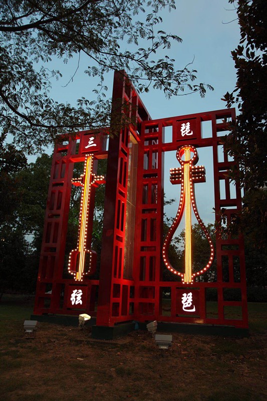 位于南园桥西南侧。以苏州特色的窗花造型为框架的该小品,造型源于苏州评弹中的乐器——三弦和琵琶,仿佛从远处画舫传来吴侬软语的弹词评话,抑扬顿挫,轻清柔缓,悦耳动听。