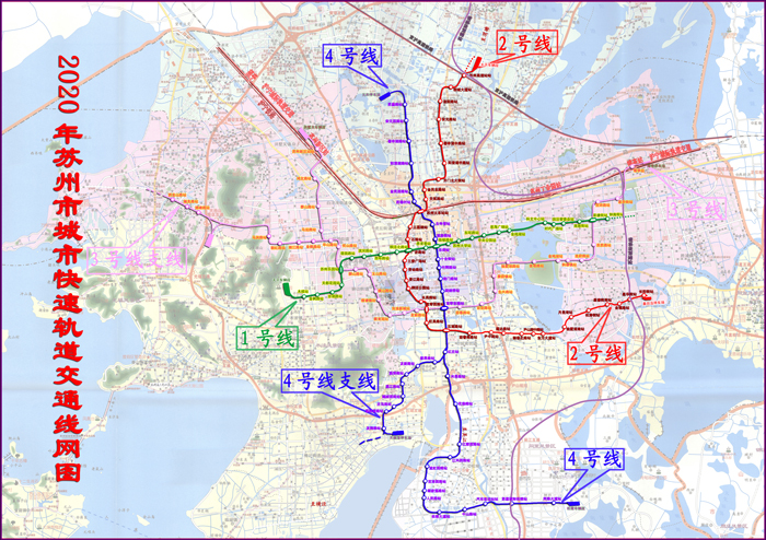苏州市轨道交通4号线及支线工程,主线路起自相城区苏虞张路站,途经相城北部新城、苏州火车站、北寺塔、观前南圈、南门商圈、吴中区中心城区、吴江市滨湖新城、吴江汽车站、松陵站等客流集散点,止于吴江市同津大道站。线路全长42公里。支线在红庄站与4号线接轨,向西延伸至越溪,止于吴中区龙翔路站。线路全长11.1公里。