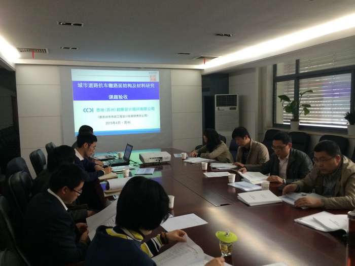 2015年4月16日,苏州市住房和城乡建设局组织召开《城市道路抗车辙路面结构及材料研究》课题验收专家评审会。我司课题组对课题研究过程及取得成果进行了全面的介绍。苏州科技大学、苏州市道路工程建设领域的多位专家认真听取了课题组的汇报,仔细审查了相关文件。经过质疑与答辩过程,与会专家一致同意该项目通过验收。