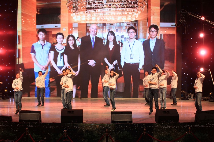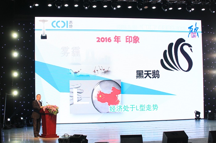 1点30分,颁奖典礼正式拉开大幕,四位颜值担当的主持人闪亮登场,公司年度十大新闻首先带大家穿越2016年,回顾过去一年取得的成绩与荣誉,随后,公司新一届总裁朱荣军先生登场,他对公司员工寄于了“责任、服务、效率”的新期望;CCDI总部张泰一总代表集团对公司并购三年的成绩及未来的发展给与了充分肯定并满载希望;最后公司史佩杰董事长用“拓展绿洲、迸发活力”的年会主题点亮全场,“逆市飘红”的优异经营业绩在寒冬中温暖人心,事业合伙人的改革思路、“大平台+小而美的团队”、“投资”、“入口管理”、“项目经理制”、“契约精神”等关键词勾勒出公司未来的发展蓝图。
